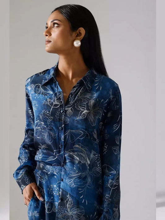 Stunning Printed Shirt Collar Co-Ord Set (Blue) VT-01122-C