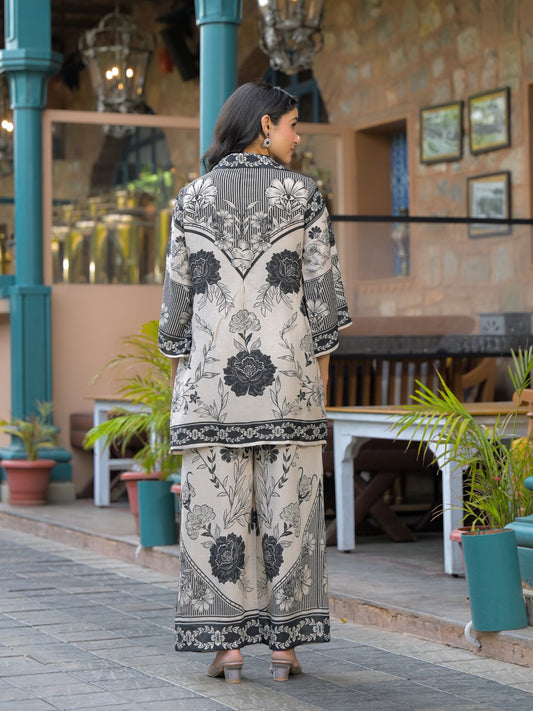 Elegant Black Floral Printed Pure Cotton Co-ord Set D6258