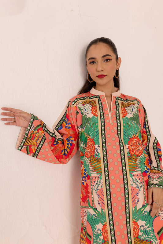 Vibrant Flamingo Printed Pure Cotton Co-ord Set Fresh & Playful Style D6257 - kharidari