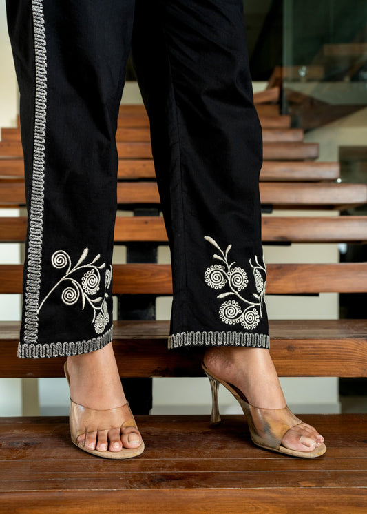 Black Floral & Geometric Embroidered Cotton Co-ord Set D6273