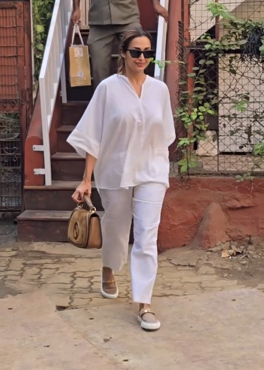 White Pure Cotton Co-ord Set with Cipli & Mirror Work D6269