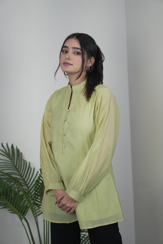 Elegant Pista Green Mul Chanderi Top for Women D6278