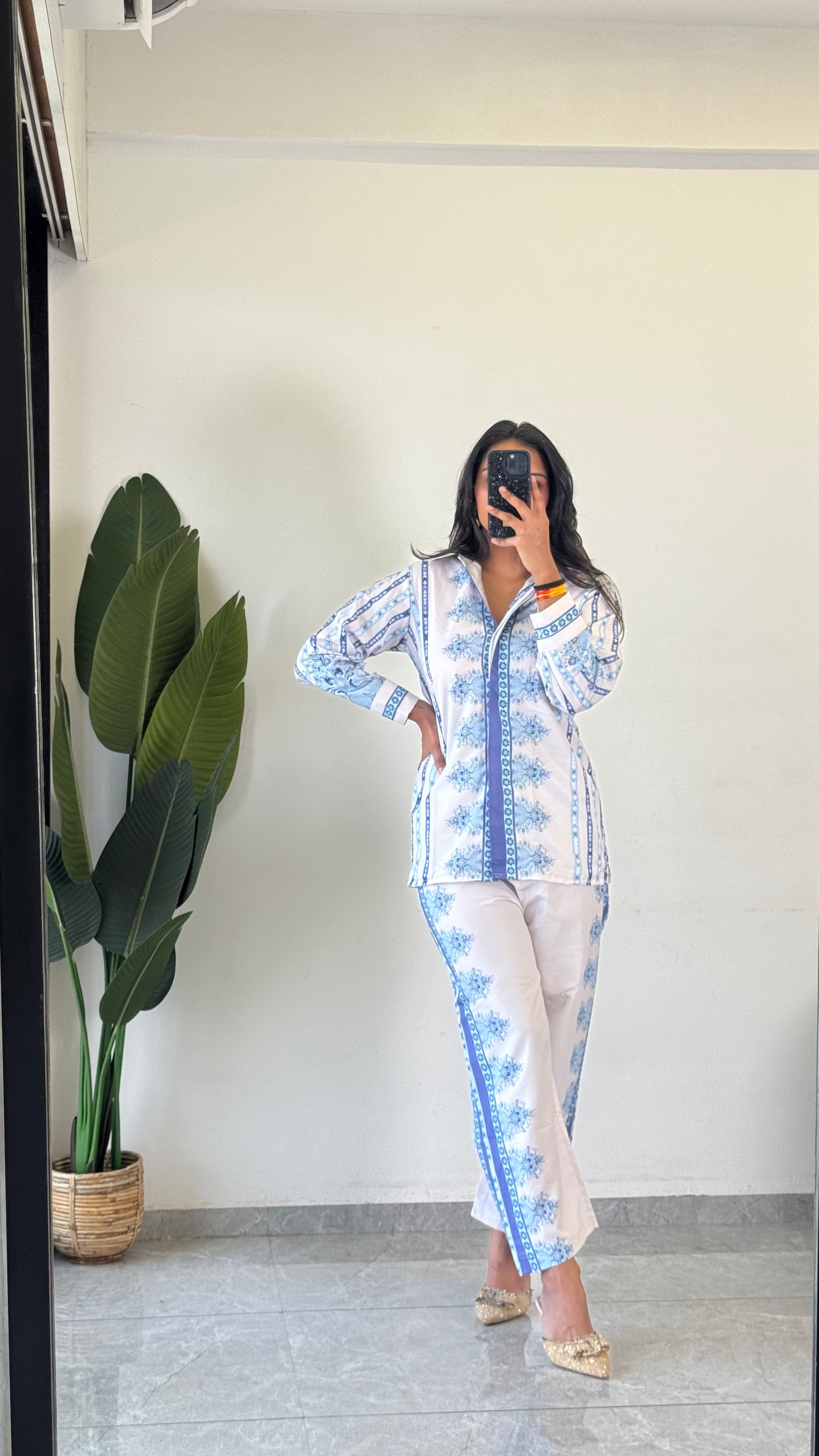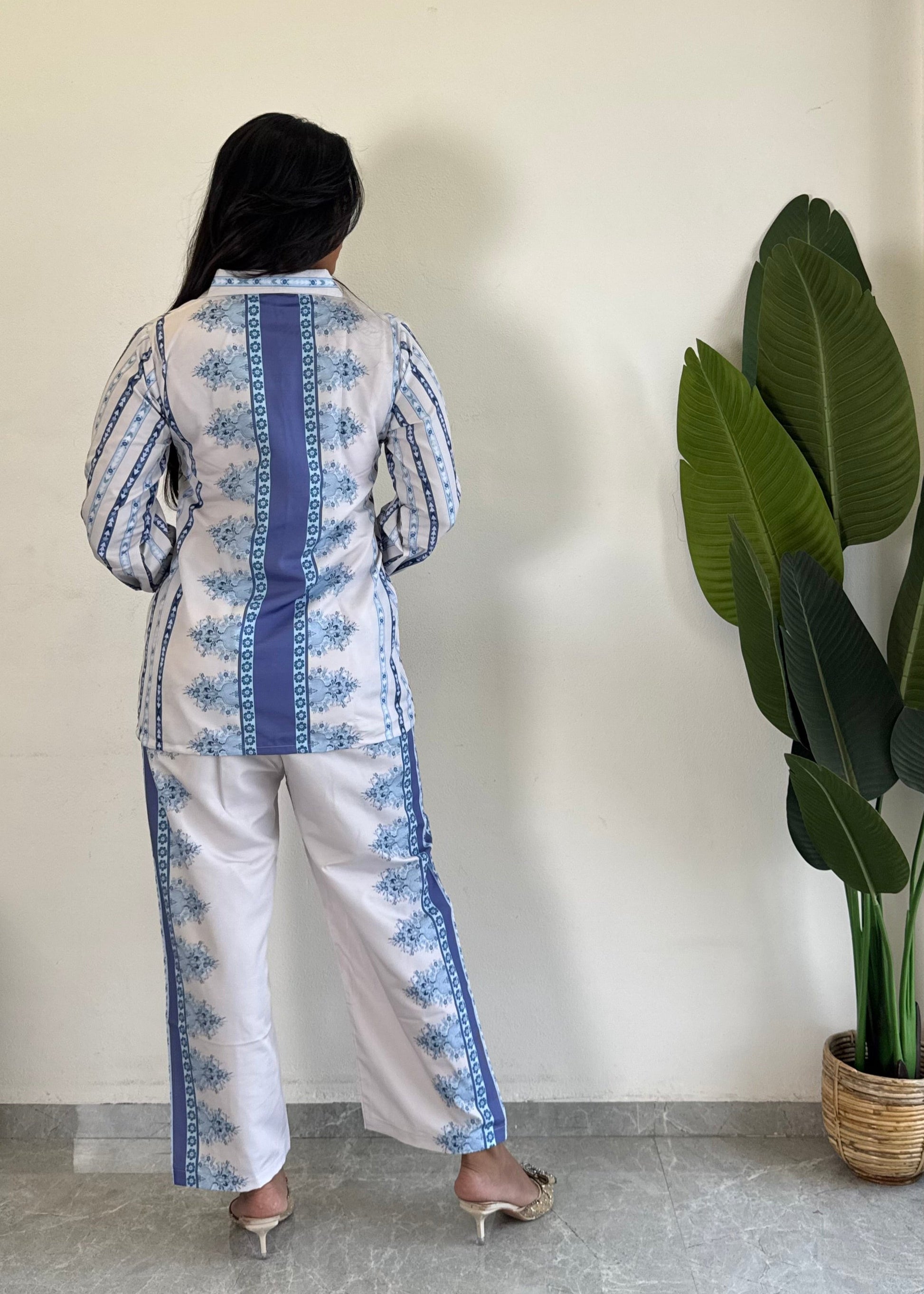 Stay stylish and comfortable with this trendy printed Raymond cotton co-ord set for women. Perfect for casual outings or lounging in style,