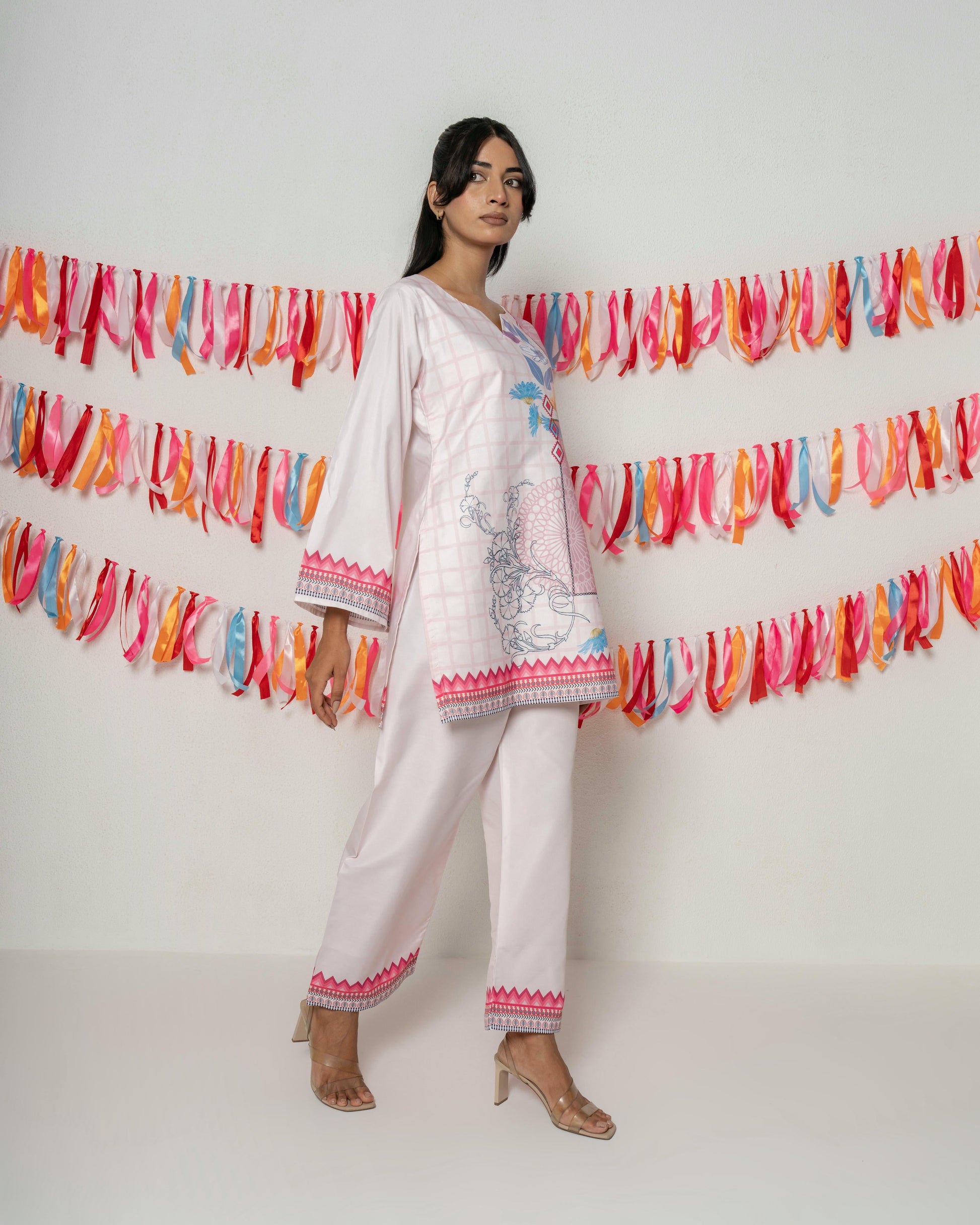 Elevate your everyday style with this elegant kurti made from premium Raymond Cotton. Designed for comfort and sophistication, this soft pink outfit features intricate floral prints in rich maroon and plum tones, beautifully balanced with a contrast hem and sleeve cuffs. The breathable Raymond Cotton fabric ensures a crisp, refined look while keeping you comfortable all day long โ perfect for both casual and semi-formal wear.