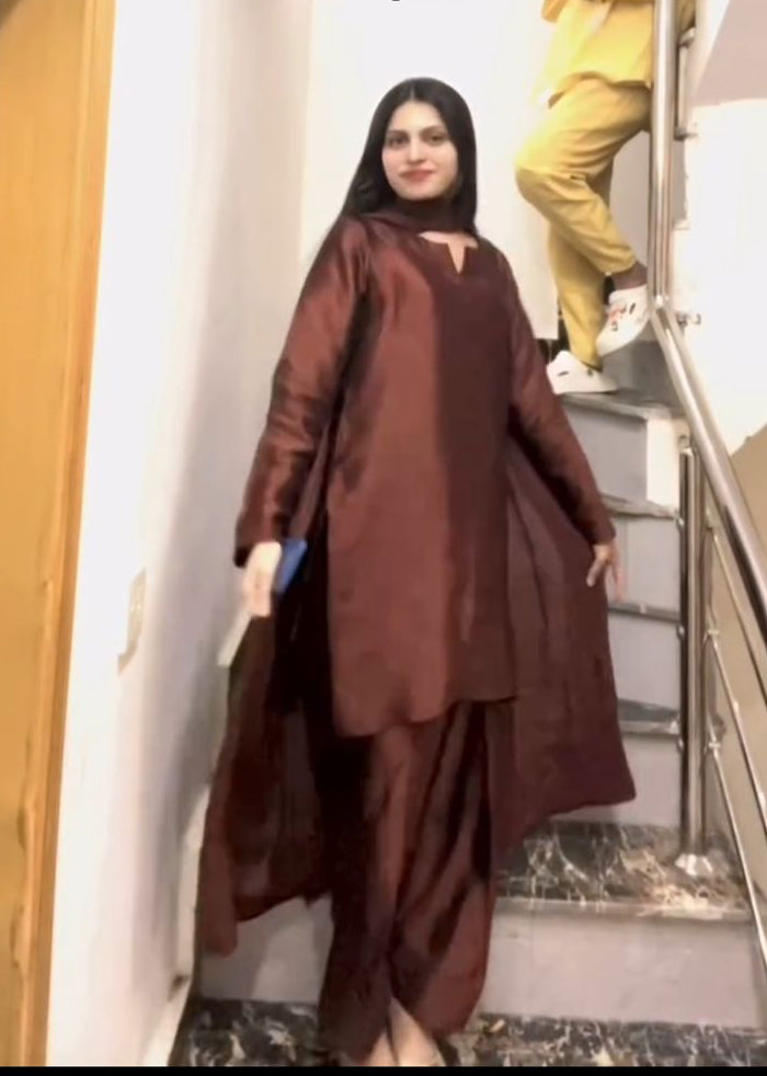 levate your style with this Elegant Brown Malai Satin Co-ord Suit Set for Women (D6281). Crafted from soft Malai Satin and paired with a delicate Malai Satin dupatta, this set offers a relaxed and flattering fit. Perfect for casual outings or parties, it combines elegance and comfort effortlessly.