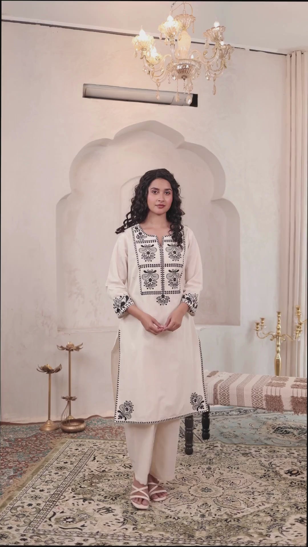 Soft and breathable flex cotton co-ord set with delicate embroidery, perfect for a stylish yet comfortable everyday look.