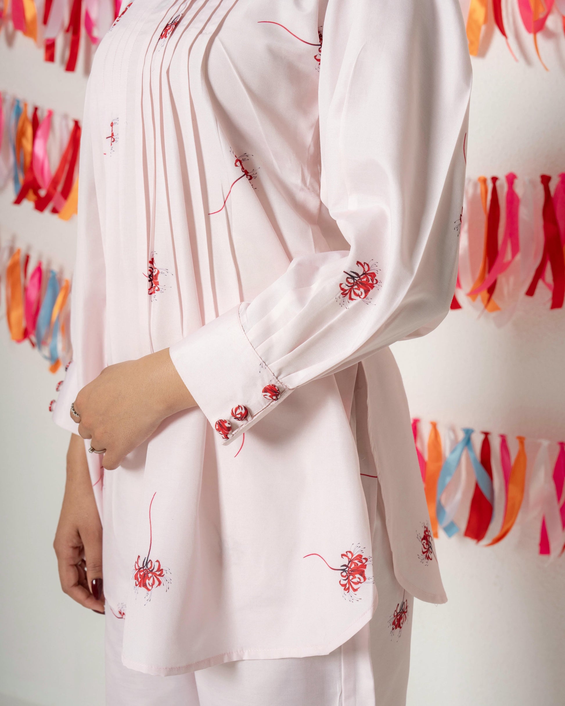 Elevate your everyday style with this elegant kurti made from premium Raymond Cotton. Designed for comfort and sophistication, this soft pink outfit features intricate floral prints in rich maroon and plum tones, beautifully balanced with a contrast hem and sleeve cuffs. The breathable Raymond Cotton fabric ensures a crisp, refined look while keeping you comfortable all day long โ perfect for both casual and semi-formal wear.
