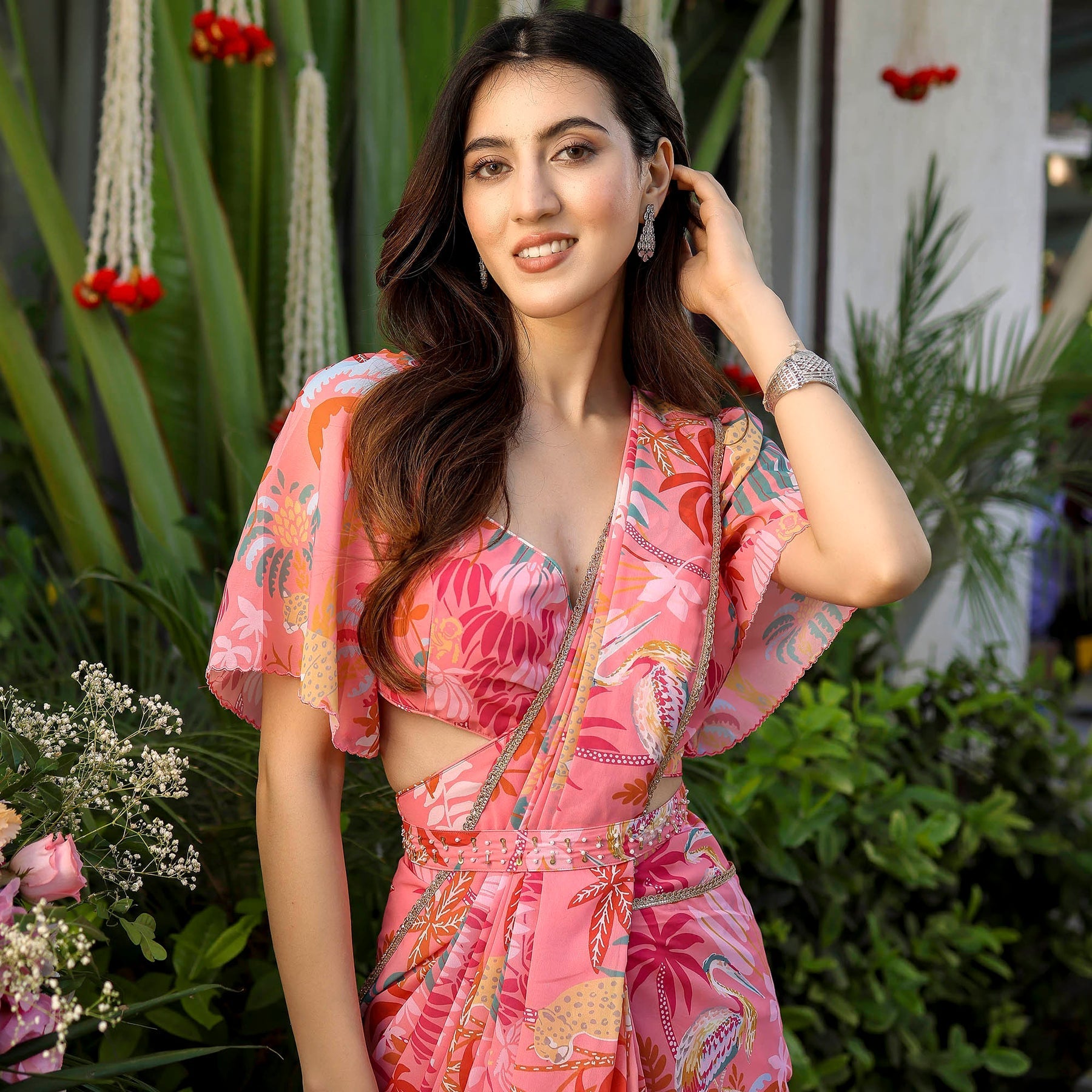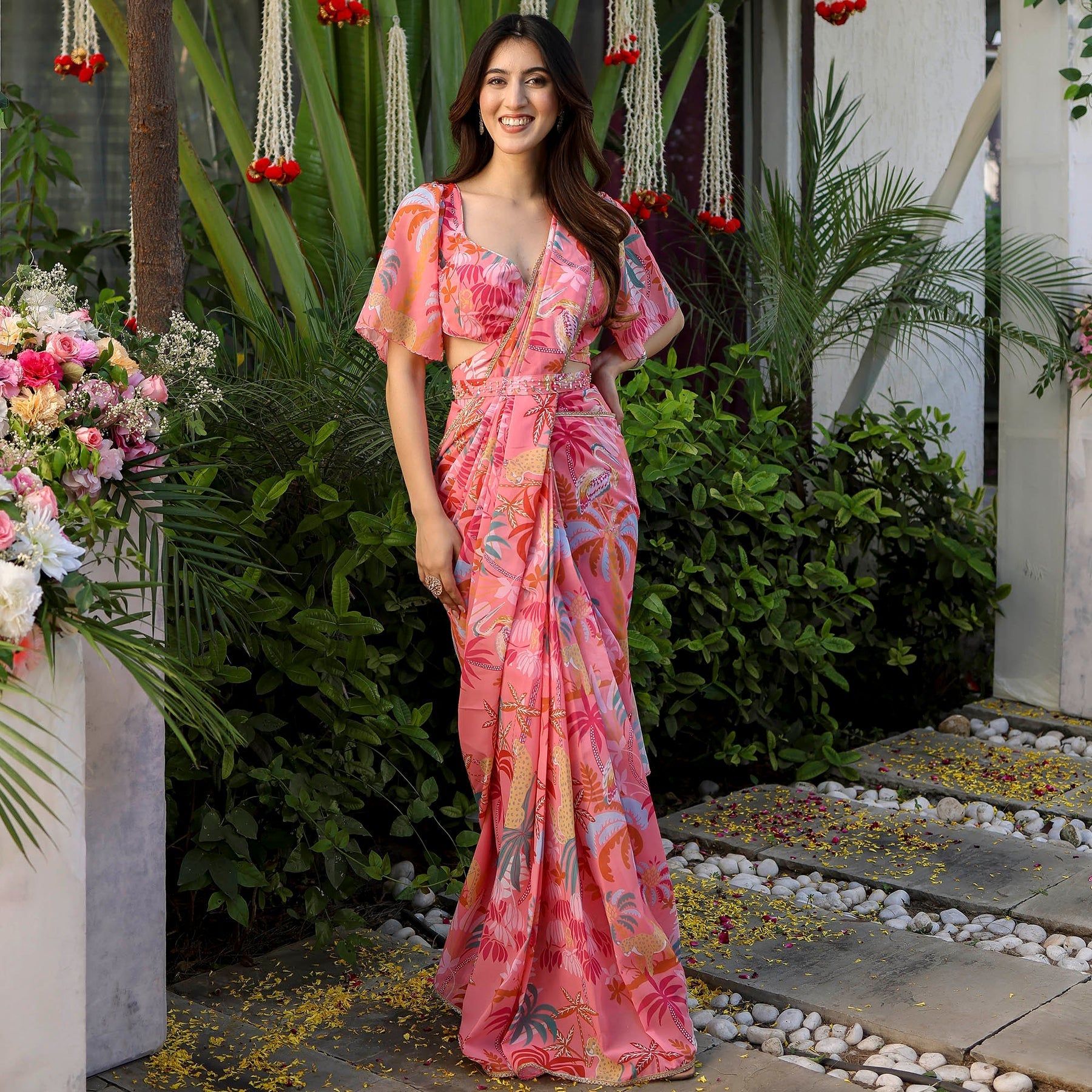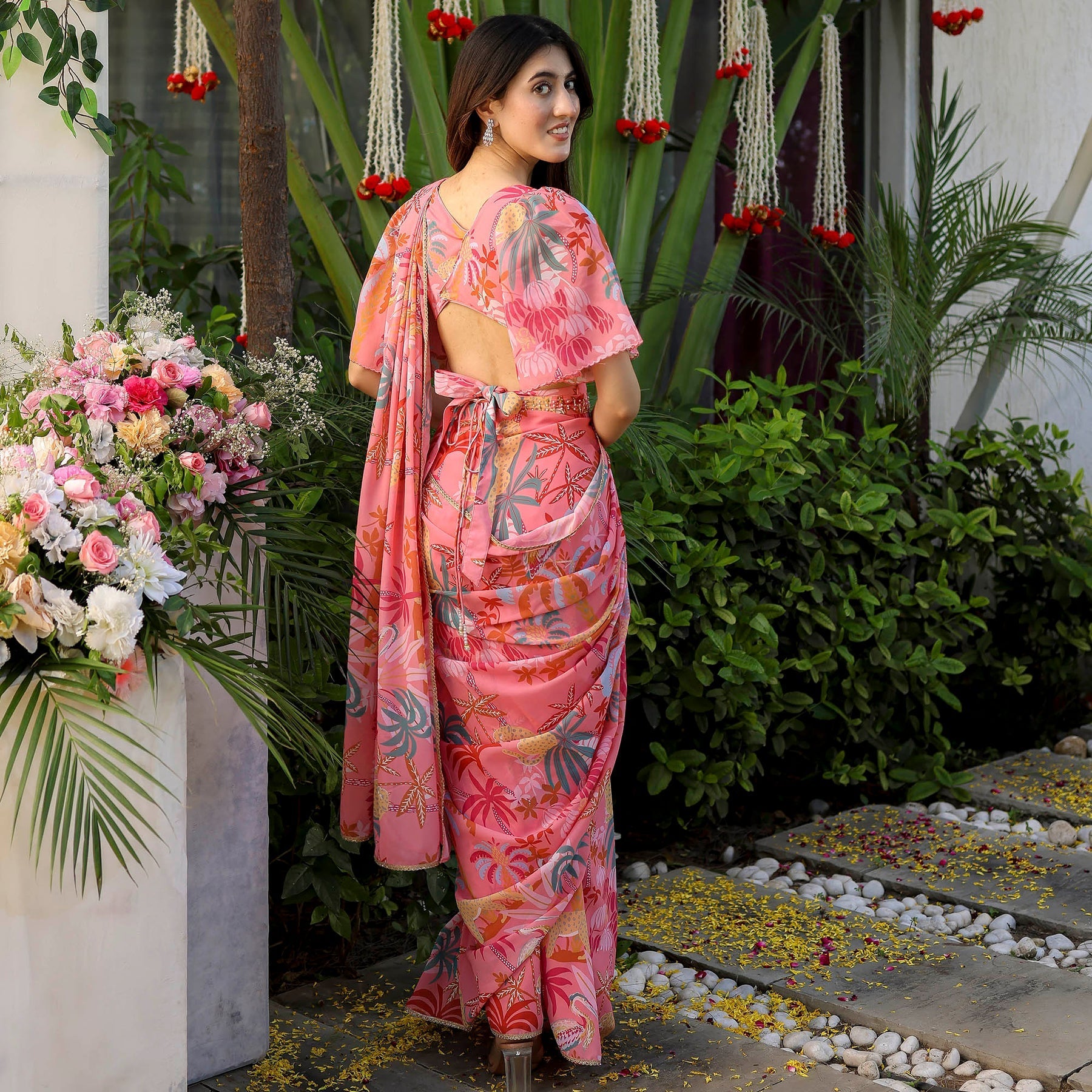 Peach Color Flower Printed Stylish Georgette Saree 5009