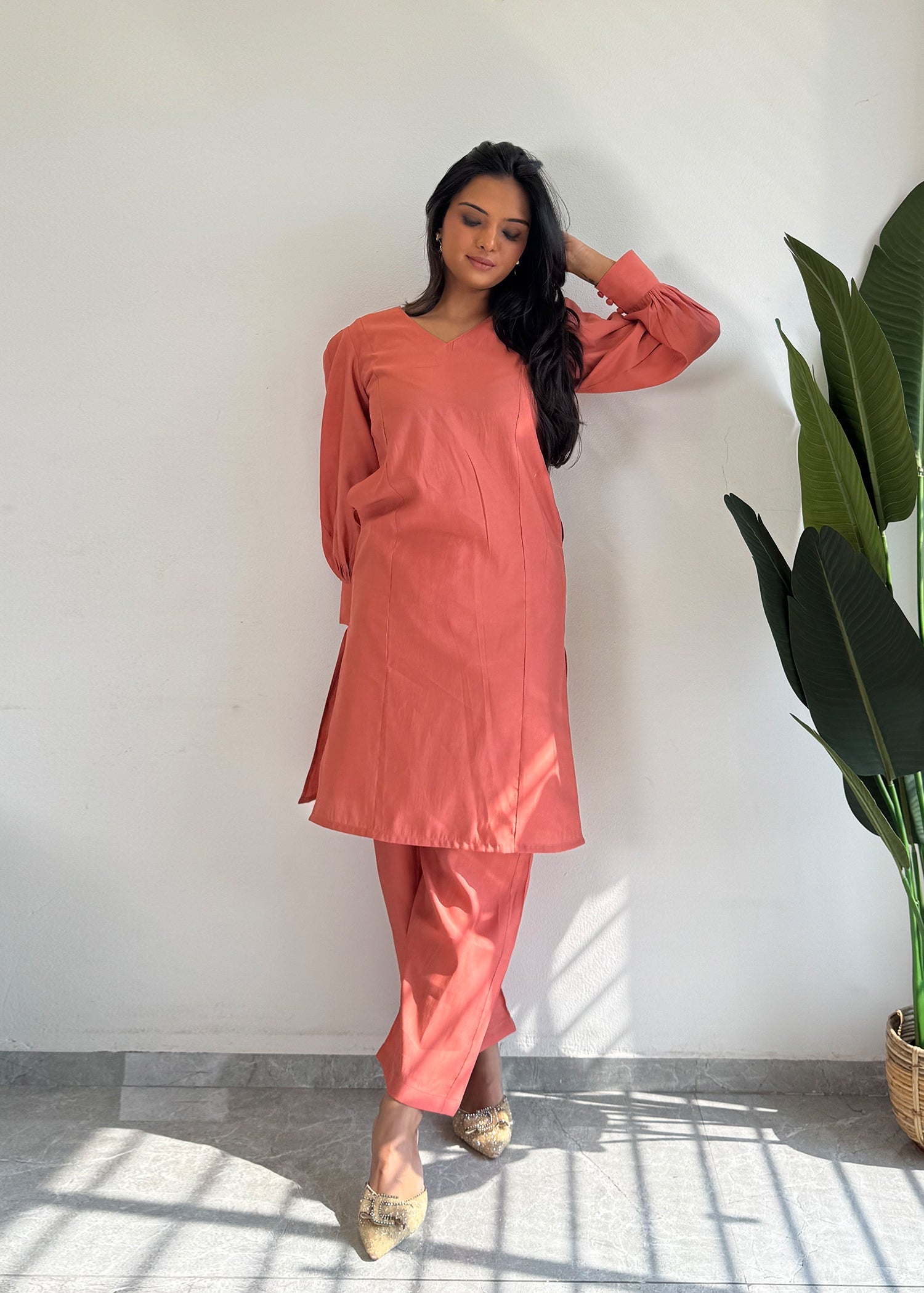 Elevate your ethnic style with this luxurious Dark Pink Roman Silk Kurta Set. Featuring a rich sheen and graceful drape, it's perfect for festive occasions, weddings, and celebrations.