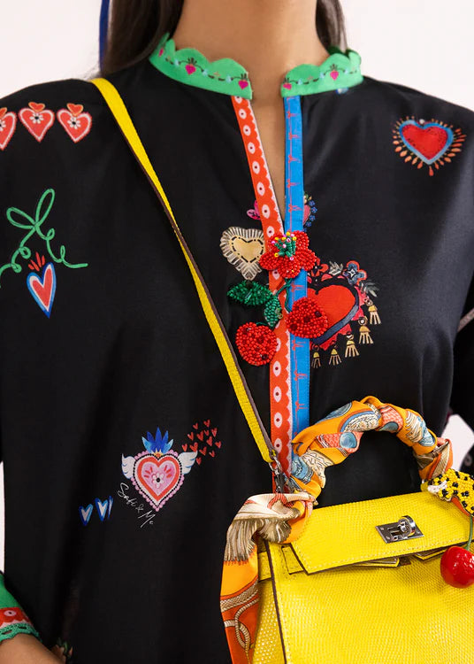 Premium Black Hand-Inspired Print Rayon Co-Ord Set D6332