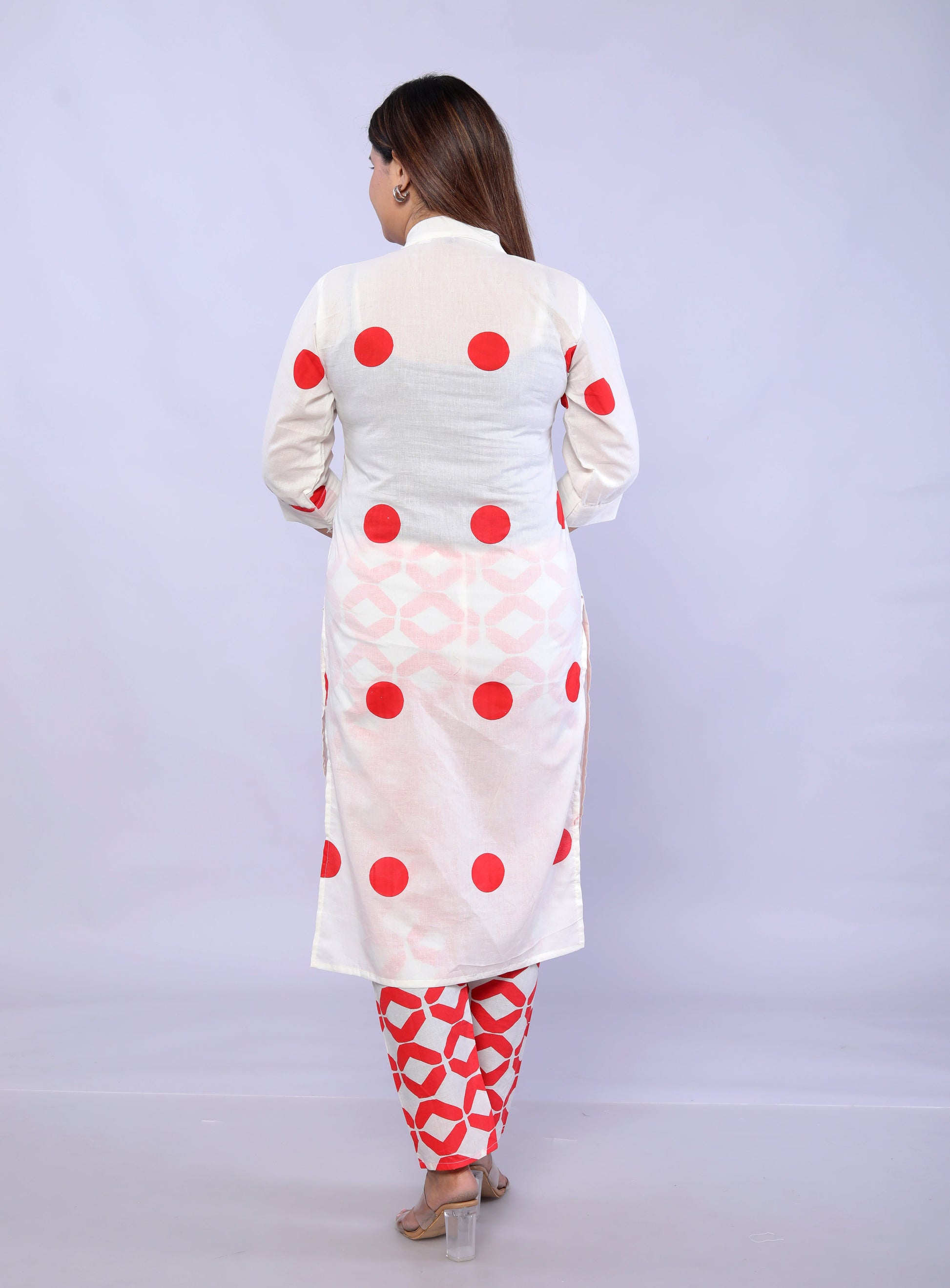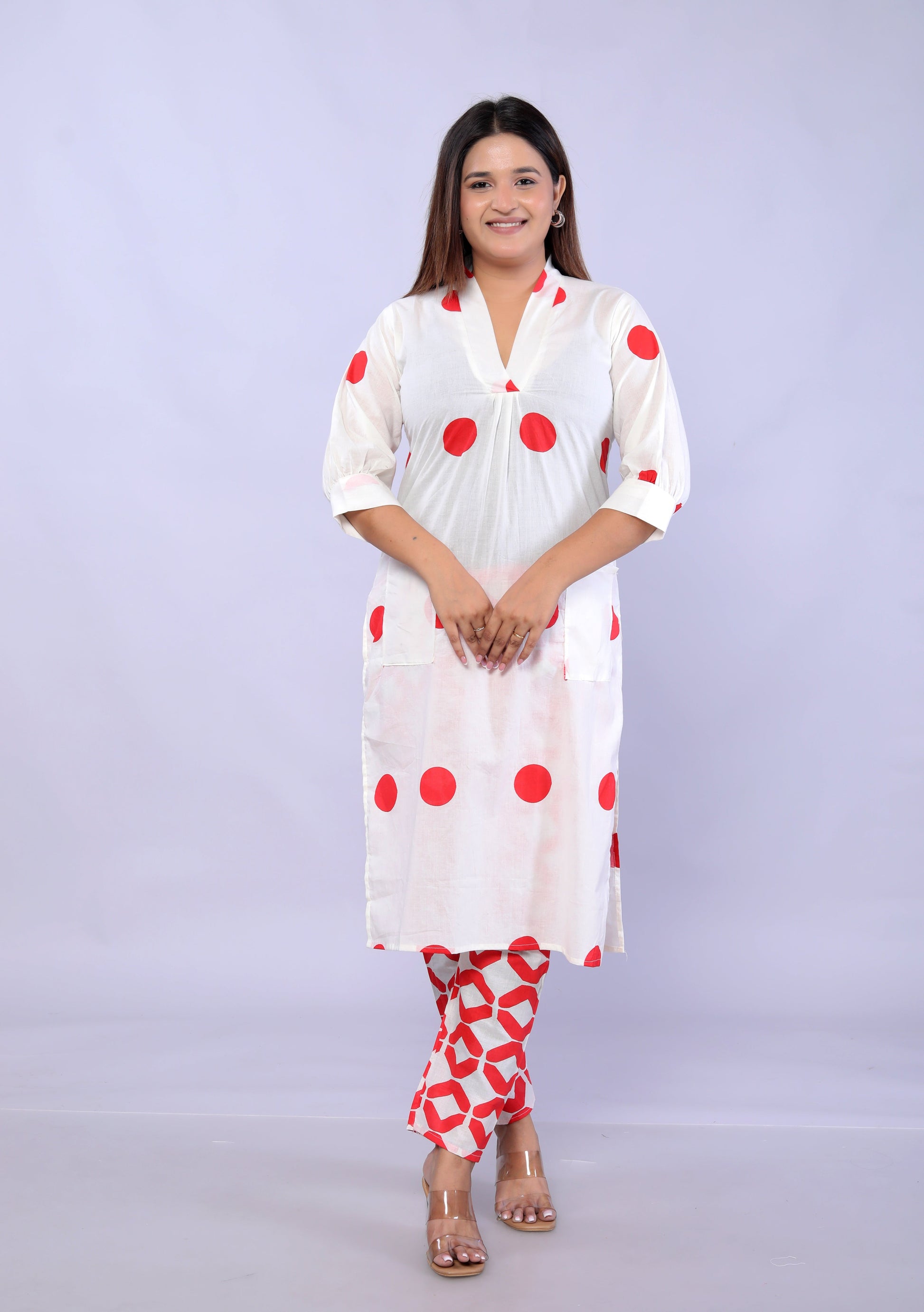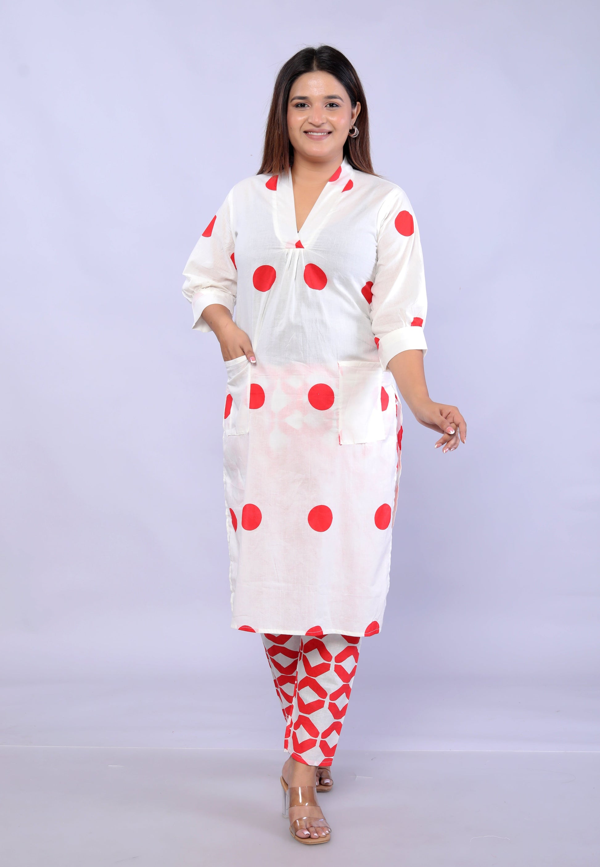 Red Polka Dots printed Cotton Co-ord Set D6042 - kharidari