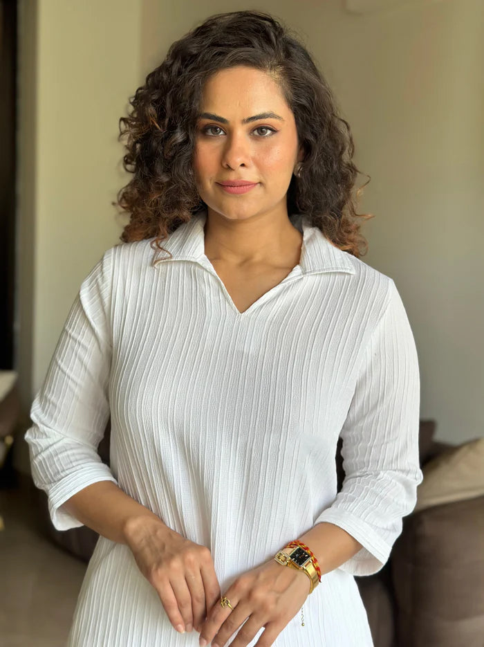 - Holiday Hues:The crisp colour and textured fabric create a timeless look perfect for any vacation destination.