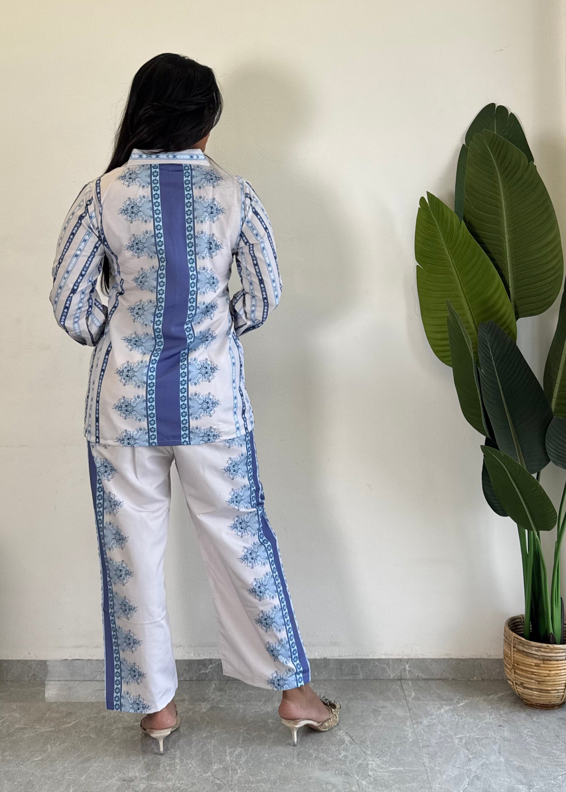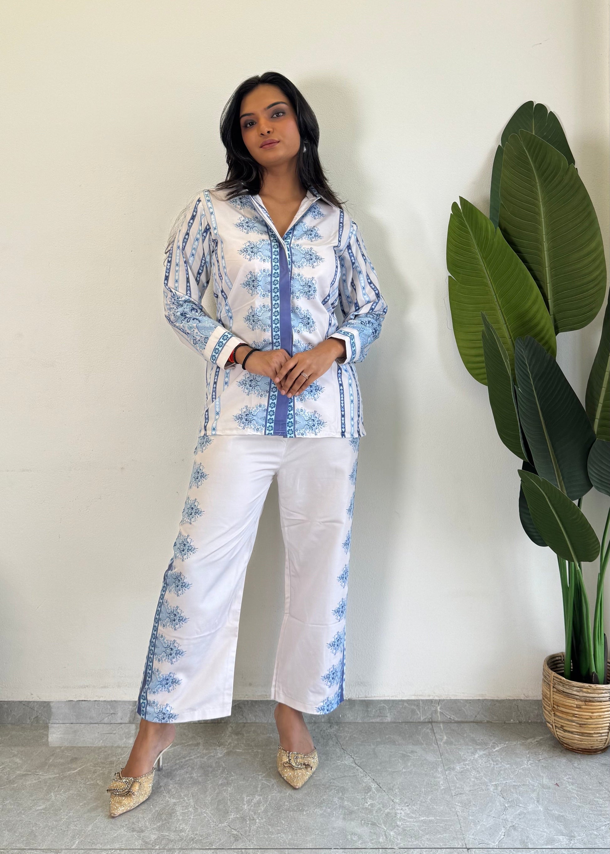 Stay stylish and comfortable with this trendy printed Raymond cotton co-ord set for women. Perfect for casual outings or lounging in style,