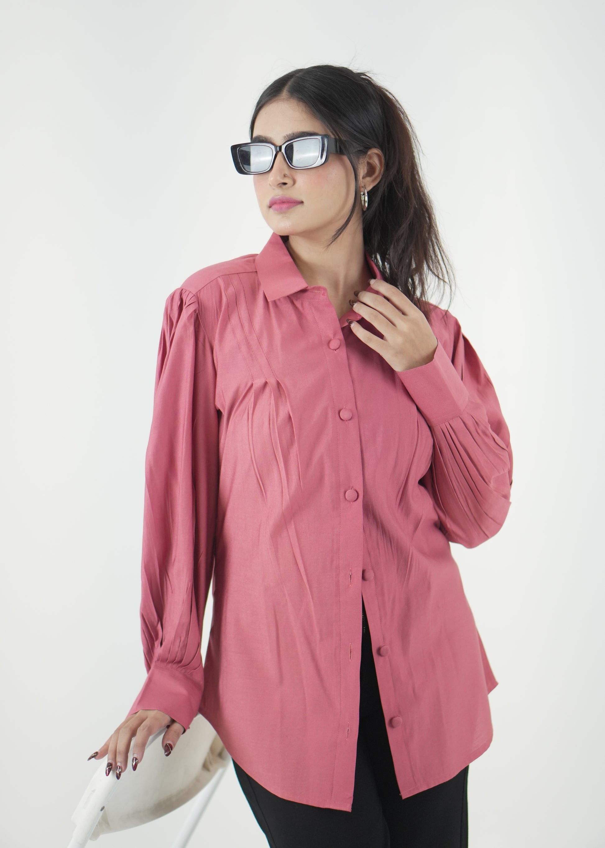 Women’s Pink Denting Fabric Regular Fit Shirt D6292